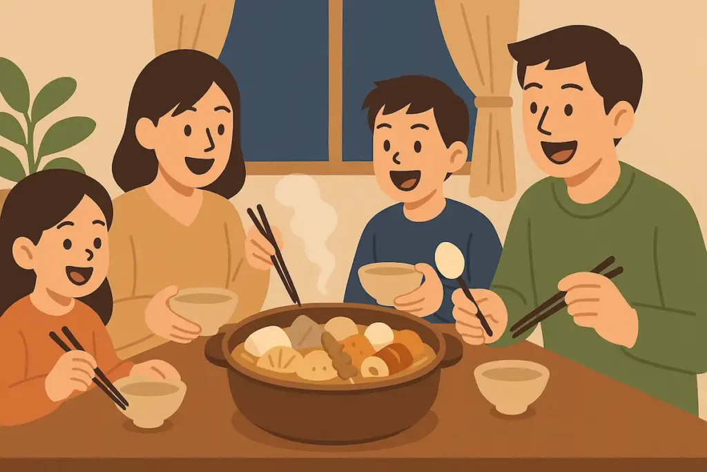 おでんは体を温め、おいしく、みんなで分け合いやすいから人気があります。子どもから大人まで幅広く愛されています。