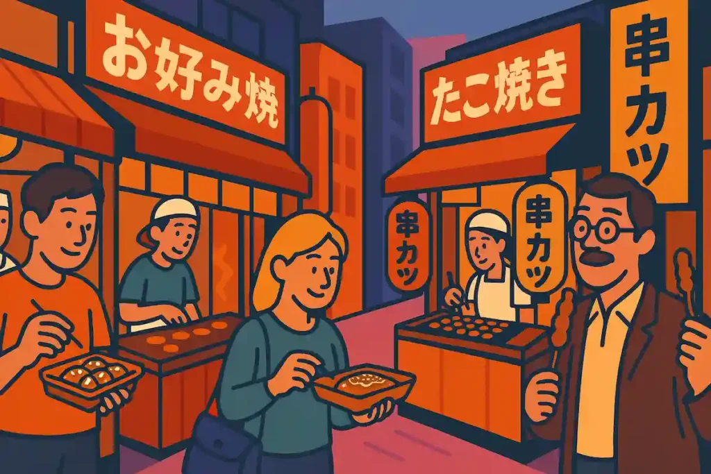 - 「食い倒れ」とは「食べることにお金を使い果たす」という意味で、大阪の食文化を象徴する言葉