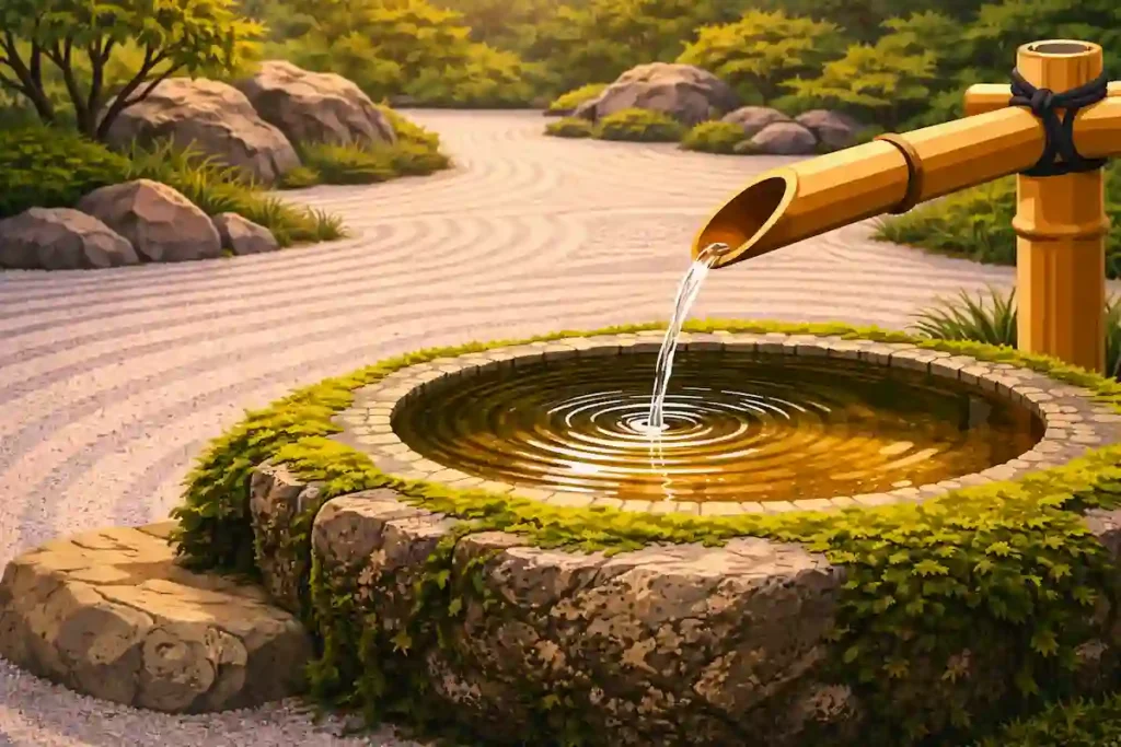 鹿おどしの魅力は、そのシンプルさと自然の力にあります。竹・水・石だけで、リズムと動きを生み出します。また、自然と人の工夫が調和する日本的な考え方も表しています。実用的な農具が、今では美しさや静けさ、さらには禅的な雰囲気を象徴する存在になっている点が、とても興味深いところです。