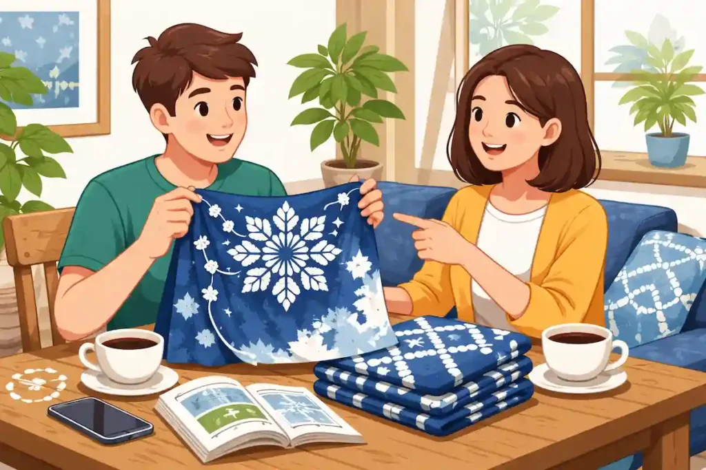 Arimatsu Shibori is valued for its long history, high skill, and handmade beauty. It is officially recognized as an important traditional craft of Japan. In the past, it was mainly used for yukata and kimono, but today it is also used for scarves, clothes, and interior items. It is popular not only in Japan but also overseas, where people appreciate its natural design and eco-friendly handmade process.