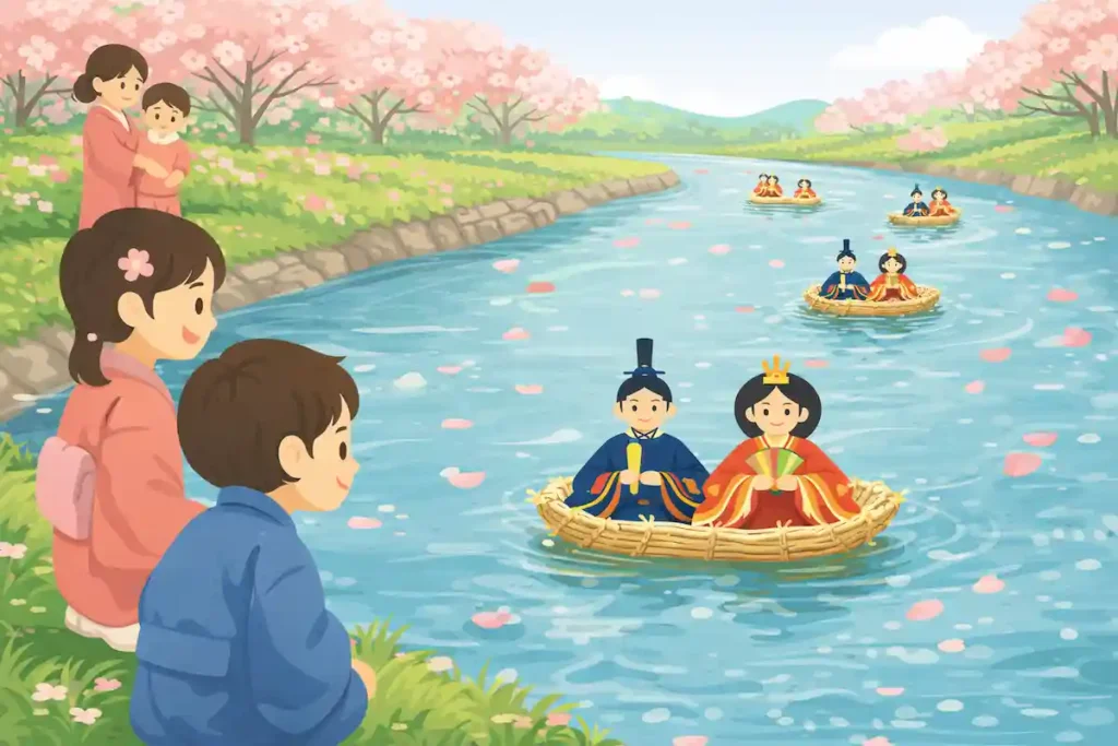 ひな祭りは、厄を払うための古い風習として始まりました。人々は人形が病気や不運を引き受けてくれると信じていました。昔は紙の人形を川に流すこともありましたが、次第に家に人形を飾る形へと変化しました。